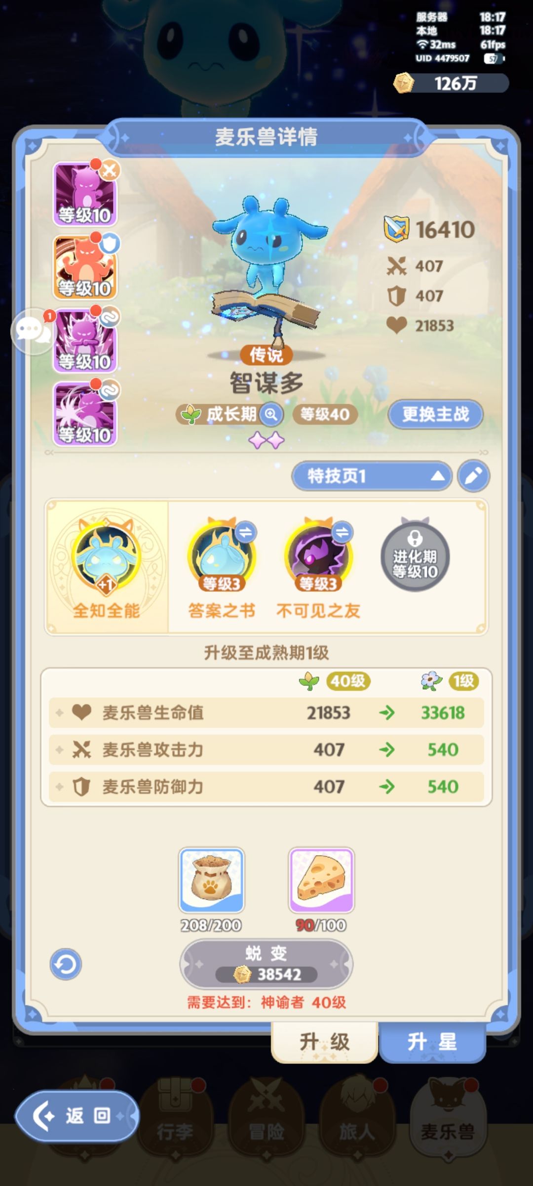 ,但还是要说一下。这期秘宝,优先拉四维金秘宝(增加暴击、技巧、全能、急速,几个防御(格挡,免伤,底力,闪避)秘宝可以先拉到三级)其次是被动增伤的两个秘宝,都是可以拉到八级的,加攻击力和加防御力加生命值的,都拉到3级即可。以上说的全是金秘宝!!金秘宝!,紫秘宝都可以先拉到3级,后面再考虑去拉。按这样的思路,下一个秘宝图之前肯定能把重要的秘宝拉到+8的③、宠物的话糕糕这边推荐每天买奶酪🧀,优先升级主站宠物,就是会升星的那一只,明天40级就可以进化变成成熟期啦(就是有朵小花花的),然后再拉一个副宠 ,也拉到成熟期,就跟糕糕后面两张图一样,两个宠物都等着明天角色40级开启进化啦。