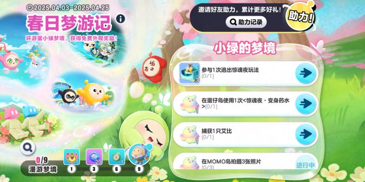 ▸▹ 春日梦游记:出发漫游蛋小绿梦境,完成任务可获得鬼畜表情及免费配饰、外观奖励;