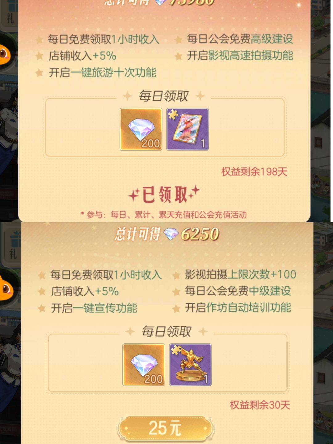 萌新时期身边很多宝宝纠结氪不氪年卡,我认为年卡很划算,唯一缺点是领奖周期长,长期玩愿意氪金的宝宝必买。