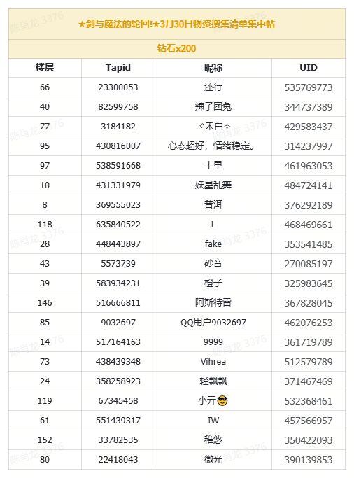 (已开奖)★剑与魔法的轮回!★3月30日物资搜集清单集中帖