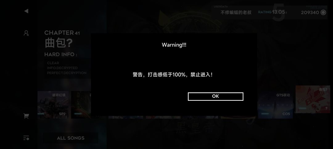 200%:叠加以上效果,打击时整个谱面抖动(长条持续)