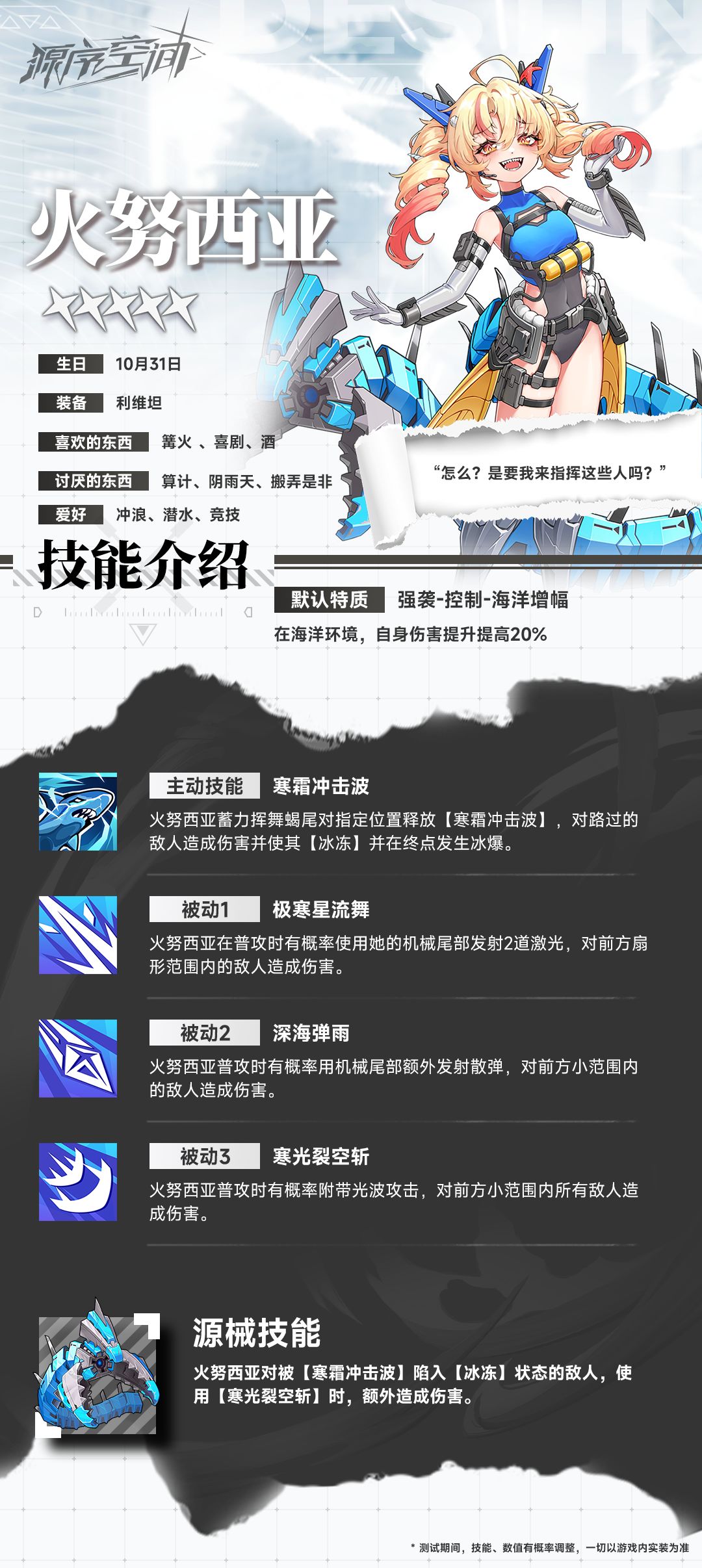 火努西亚是海浪送至阿彻利斯群岛的婴儿,被哈米哈发现并抚养长大;