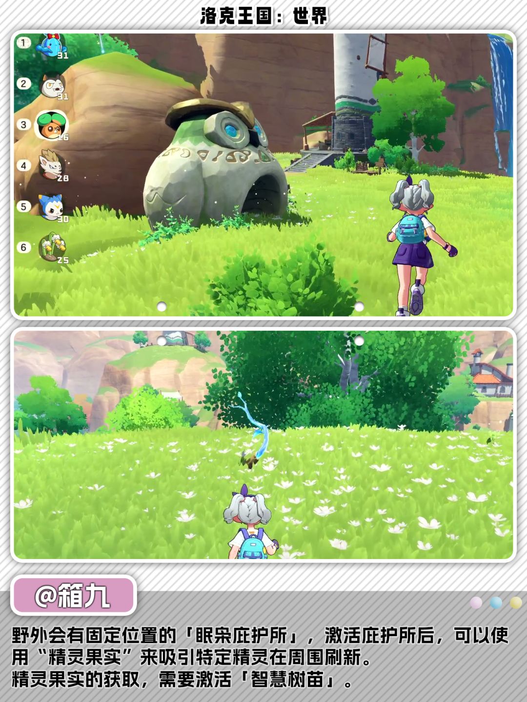 上阵的6只精灵可以全部从咕噜球里释放出来,跟随我们探索大世界。