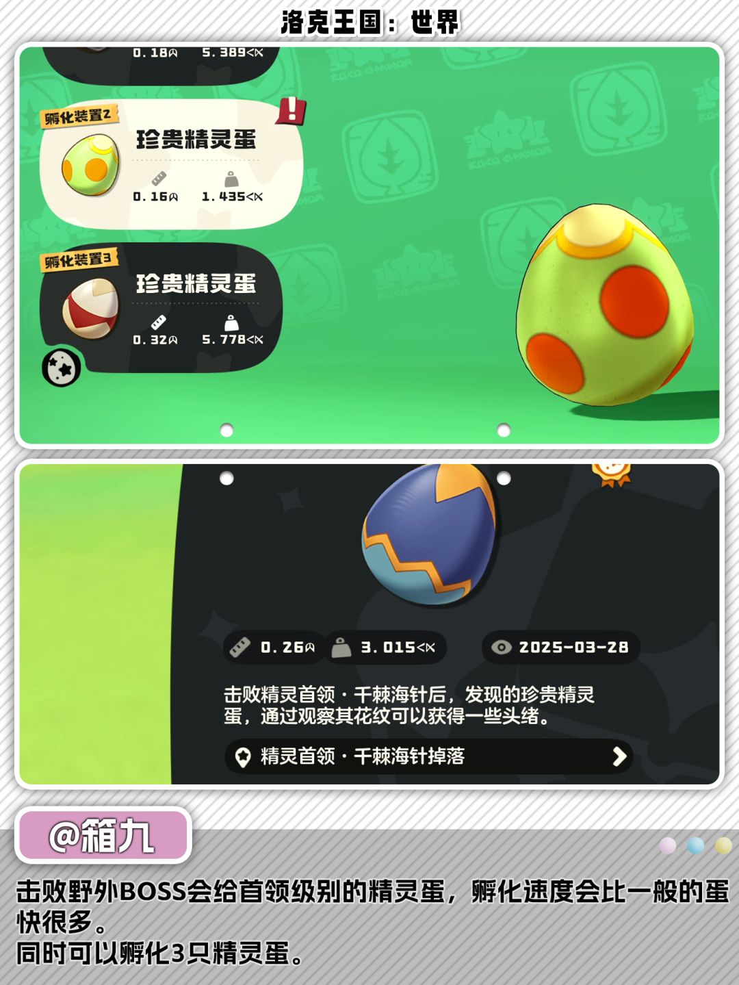 外的BOSS会掉落蛋,可以孵化出首领级别的精灵,属性通常还不错。