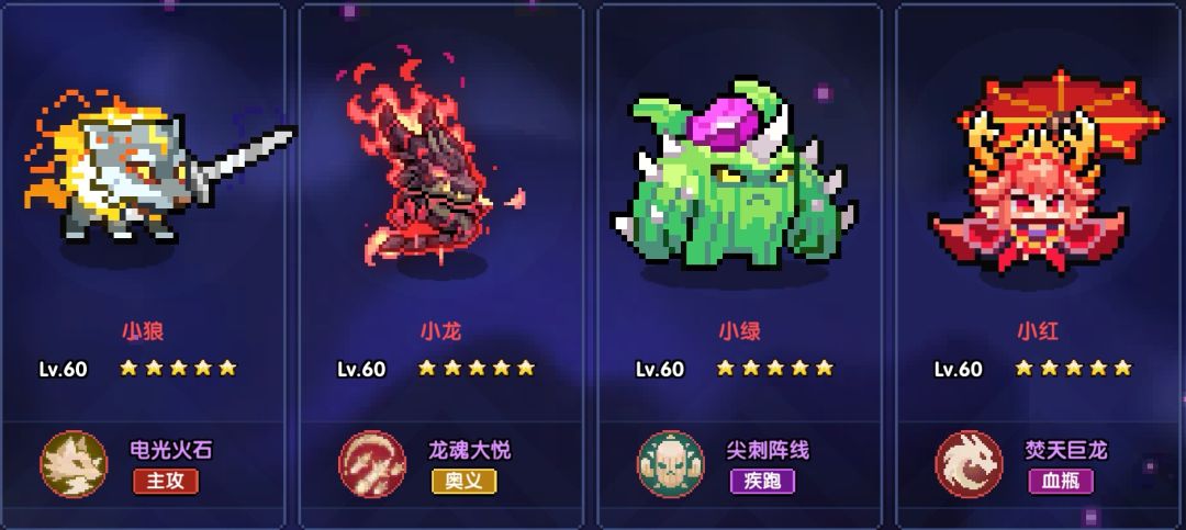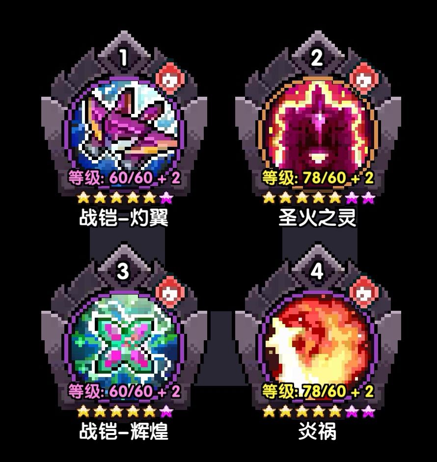 烈焰牛魔、热血小骨头、传说勇者-佑、遗迹守护者(从上到下)