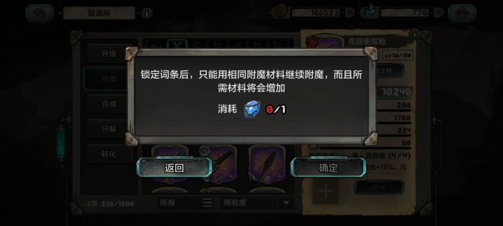 被更改,锁定词条后该装备的每次附魔所需消耗将会增加。
