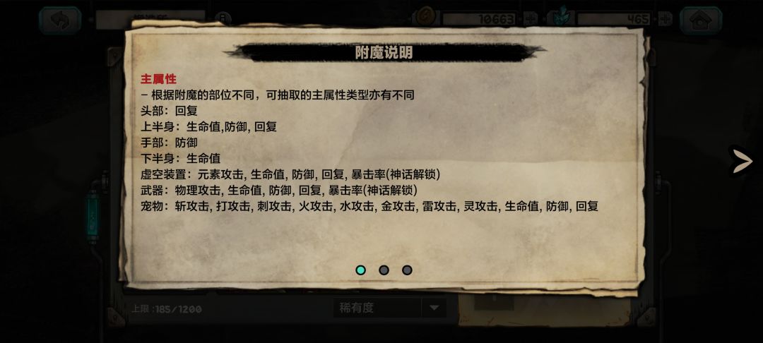 根据附魔的部位不同,可抽取的主属性类型亦有不同