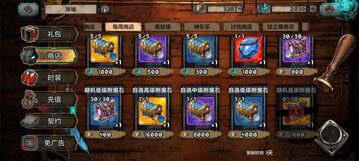 每周商城:前期推荐使用附魔粉购买随机高级附魔石