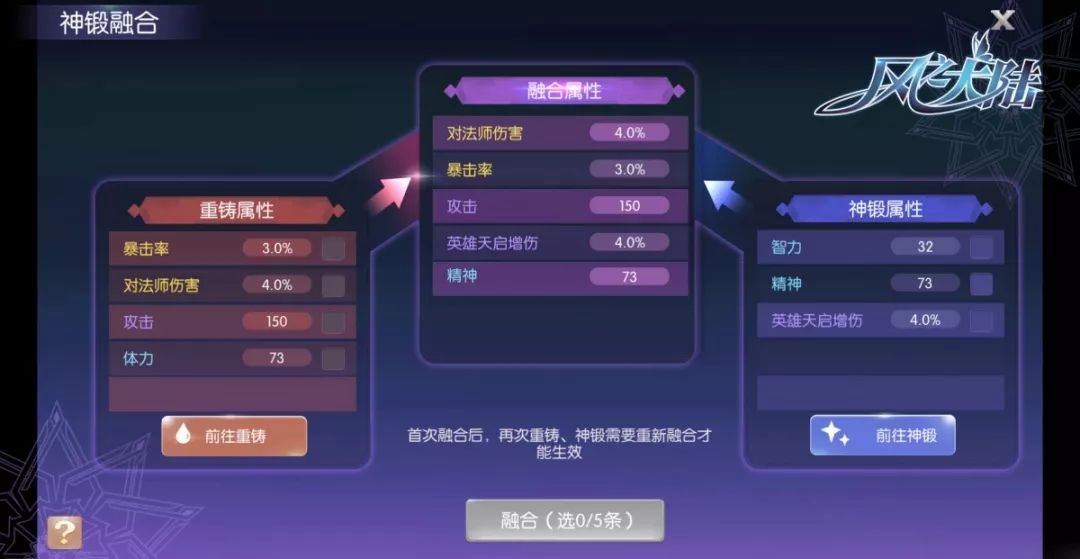 除此之外,大家别忘记对装备进行重铸、神锻,追求更好的融合属性词条。