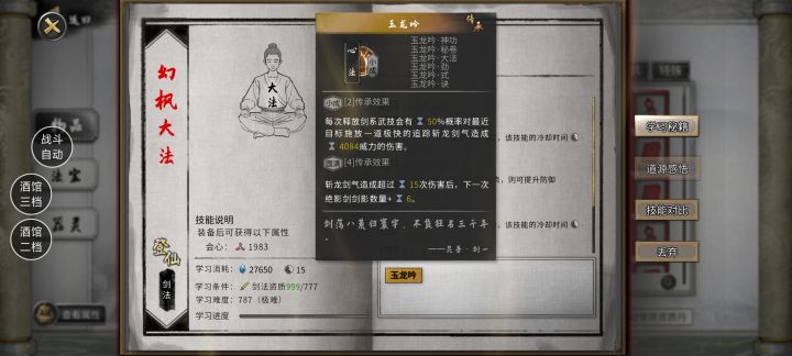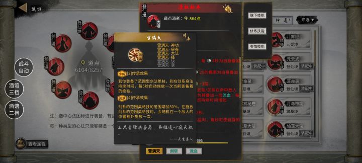 登仙后最大的一个亮点就是功法阁换心法传承套装了,玉龙吟绝影剑专属,疾风只能吃二件套效果,雪满天没人说,剑阵效果不好,落日剑的伤害是不是不叠加??