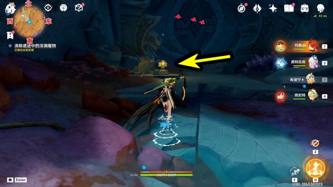 下来之后看向西北方向,前面有个机关,顺路开启一下