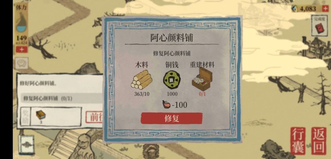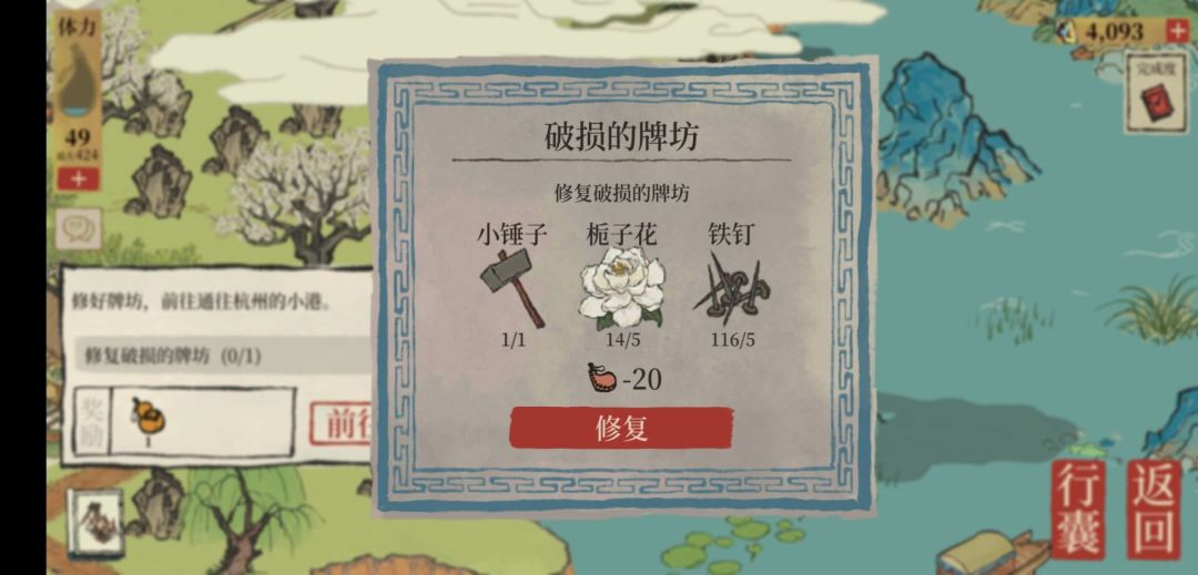 8.修复越桃亭(期间有一个买栀子花种子、种栀子花的任务)