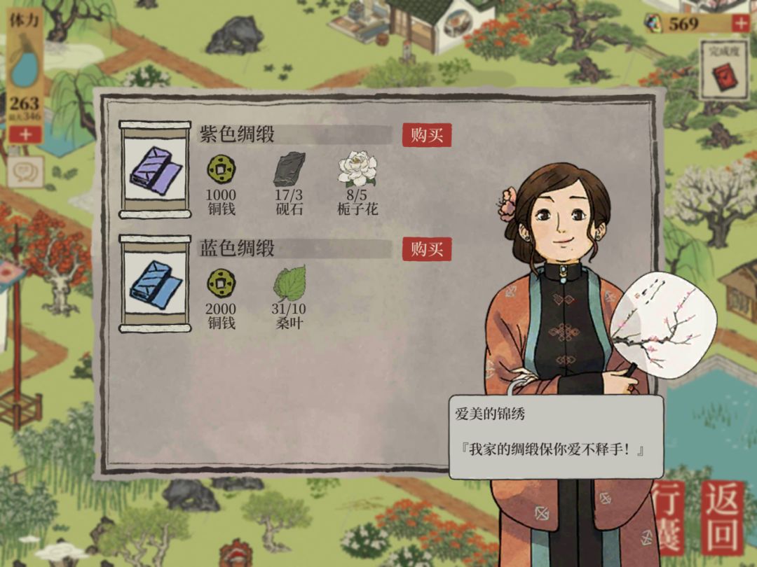 此处提示:桑叶可以回现实里砍桑树,这样比较快。虽然可以在现实砍,但还是会有种桑树、摘桑叶的任务。桑树苗可以在竹农那里买。