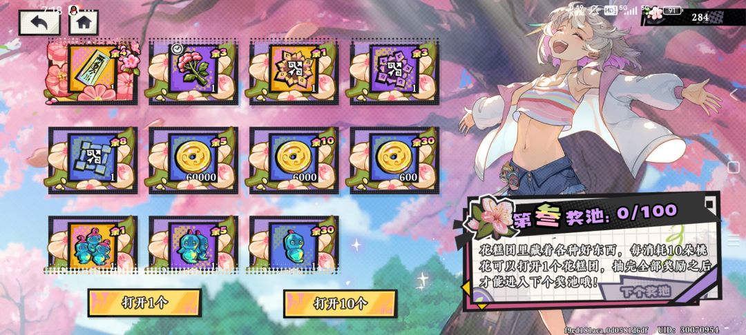 活动奖励除了(30+30)*9+30*4+100*2(极关卡总量)的琉璃眼外还有消耗桃花的奖励池。