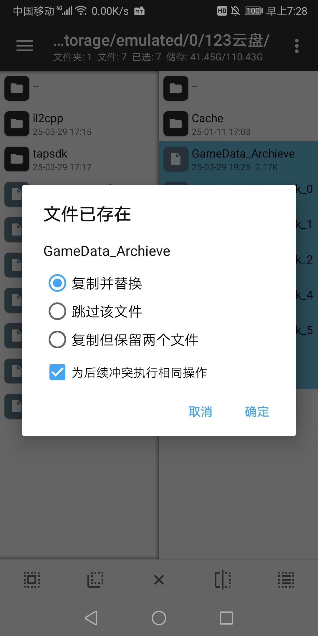 点击复制按钮后勾选 “为后续冲突执行相同操作” 选项