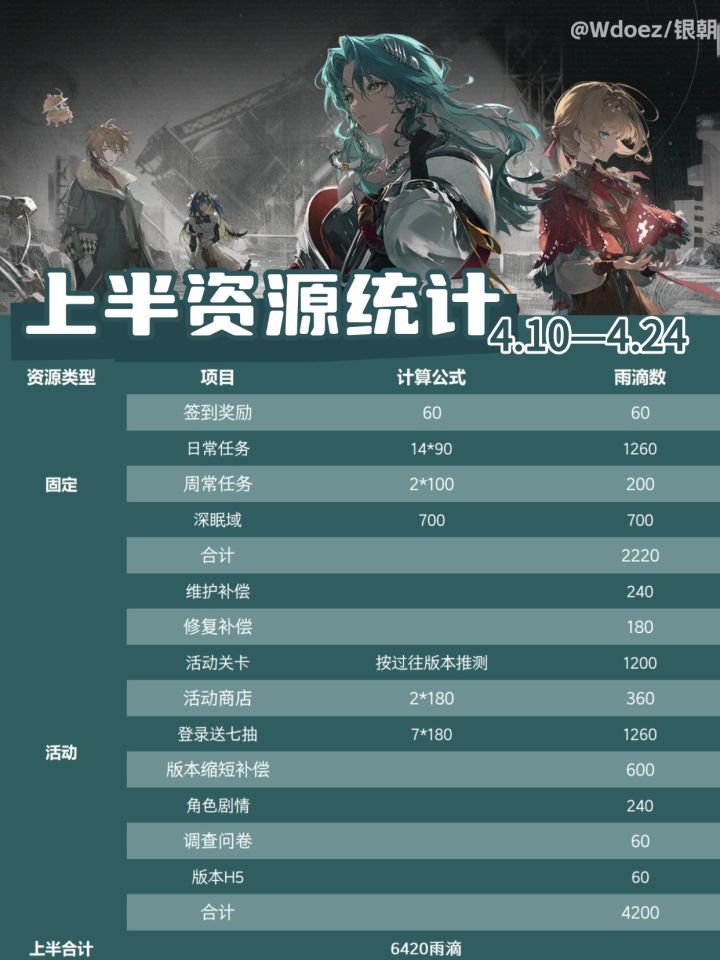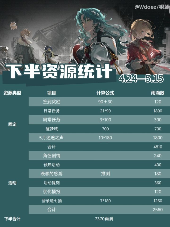 本次因为版本时间缩短(上半少了一周时间),导致抽卡资源没有以往多,但是实际平均天数下来是和以往活动版本一样的