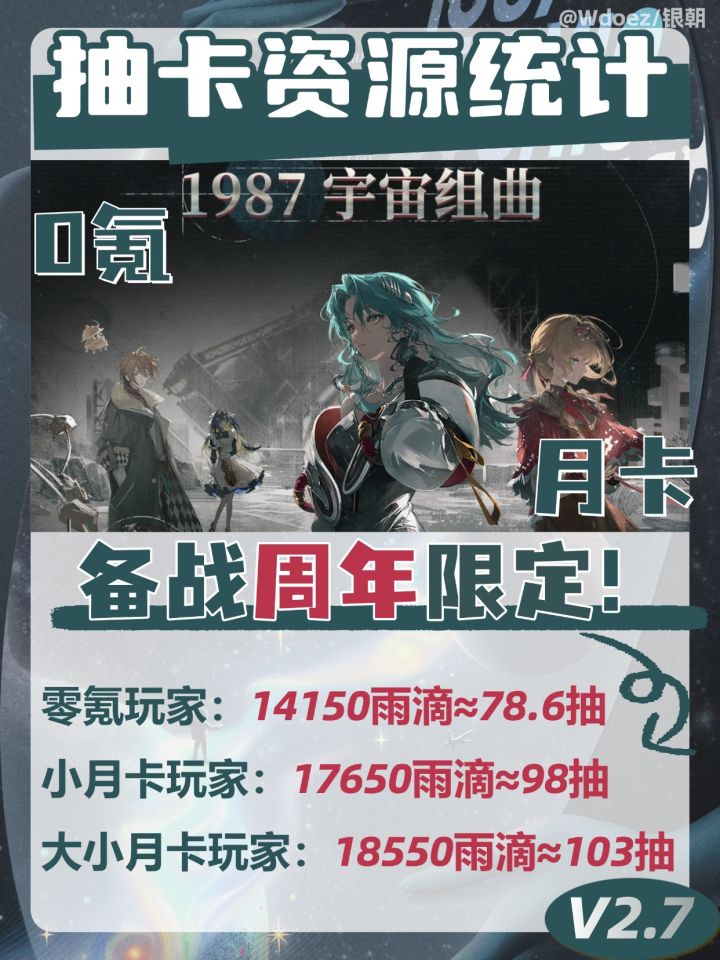 按照时间推算2.8版本应该就是二周年了,众所周知周年庆意味着限定,所以做了一期2.7版本可获得的抽卡资源统计,方便大家更好规划自己的抽卡计划