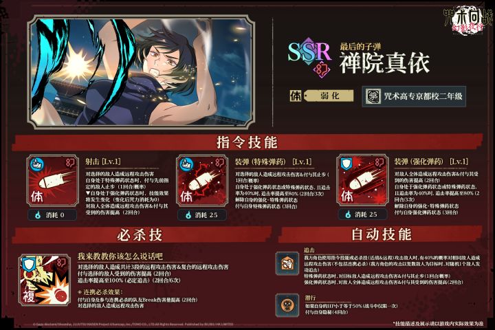 SSR角色【最后的子弹】禅院真依 技能详情