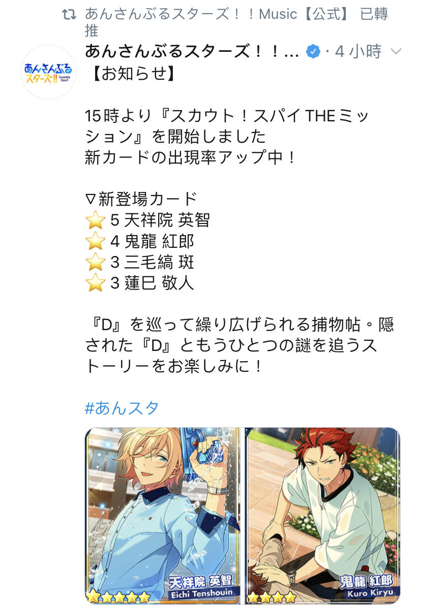 今日15:00点将开启新卡池【招募 !间谍行动】!新卡片的出现率UP!