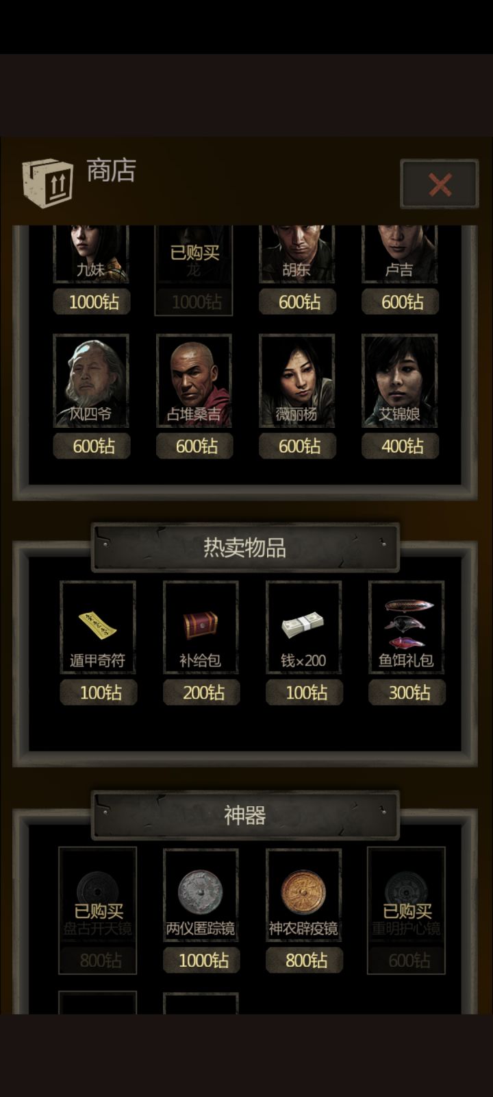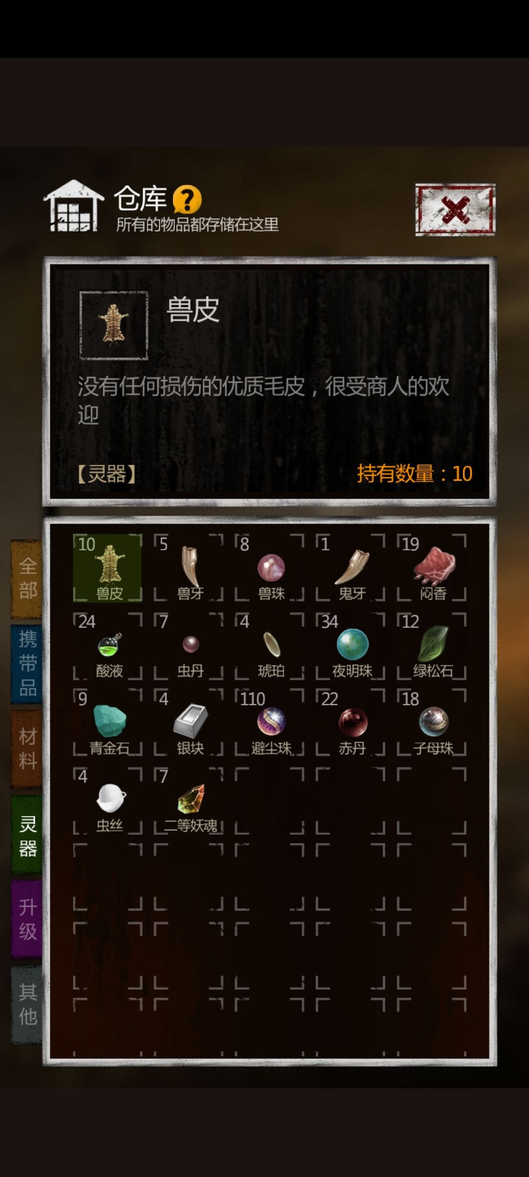 除了肉 木板 铁 铜 线 朱砂 布这种基础资源,还可以拿一些宝珠升级镜子。