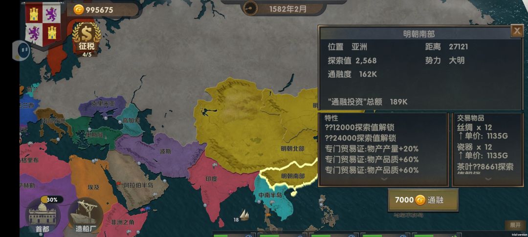 贸易是前期捞钱的主要方法,而贸易商品的价格也有所不同,目前最值钱的是金,银,丝绸,瓷器,本期带大家盘点一下图内富裕的贸易地区