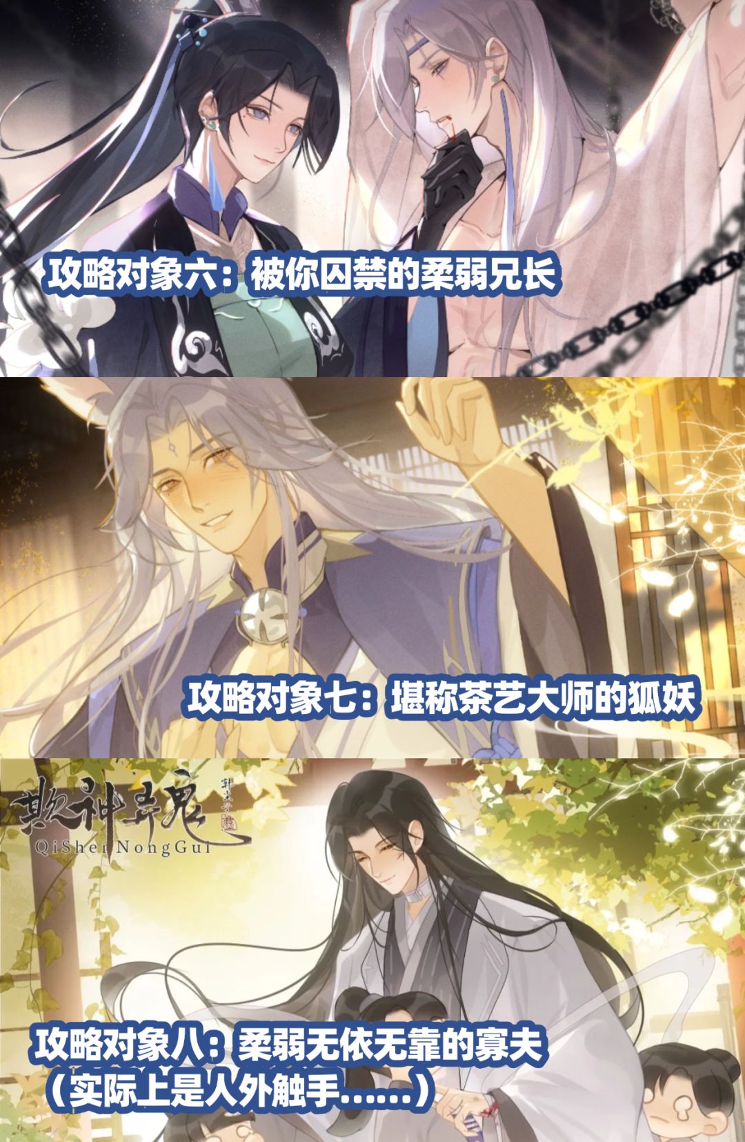 女尊架空的设定加上妖魔神横行的人物塑造,更是有多达16+位的攻略对象,什么叫做眼花缭乱,选不过来!!这是什么盛宴!!!