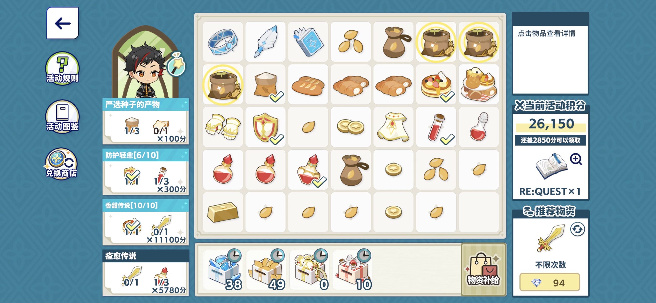 制作人们久等啦,让我们恭喜以下幸运的制作人们!助理君已统计全部正常显示楼层与图片,奖励会在7个工作日内发放到制作人的礼物盒中,请注意查收~!【3月29日物资搜集清单】请帮助理君搜集一件[骑士装备]系列、2级及以上的道具~*如不清楚道具所属系列,可以在合成界面左侧点击【图鉴】进行确认~期待制作人们的参与!【活动奖励】助理君将会为连续提供符合条件的截图4天及以上的制作人送上钻石*300+