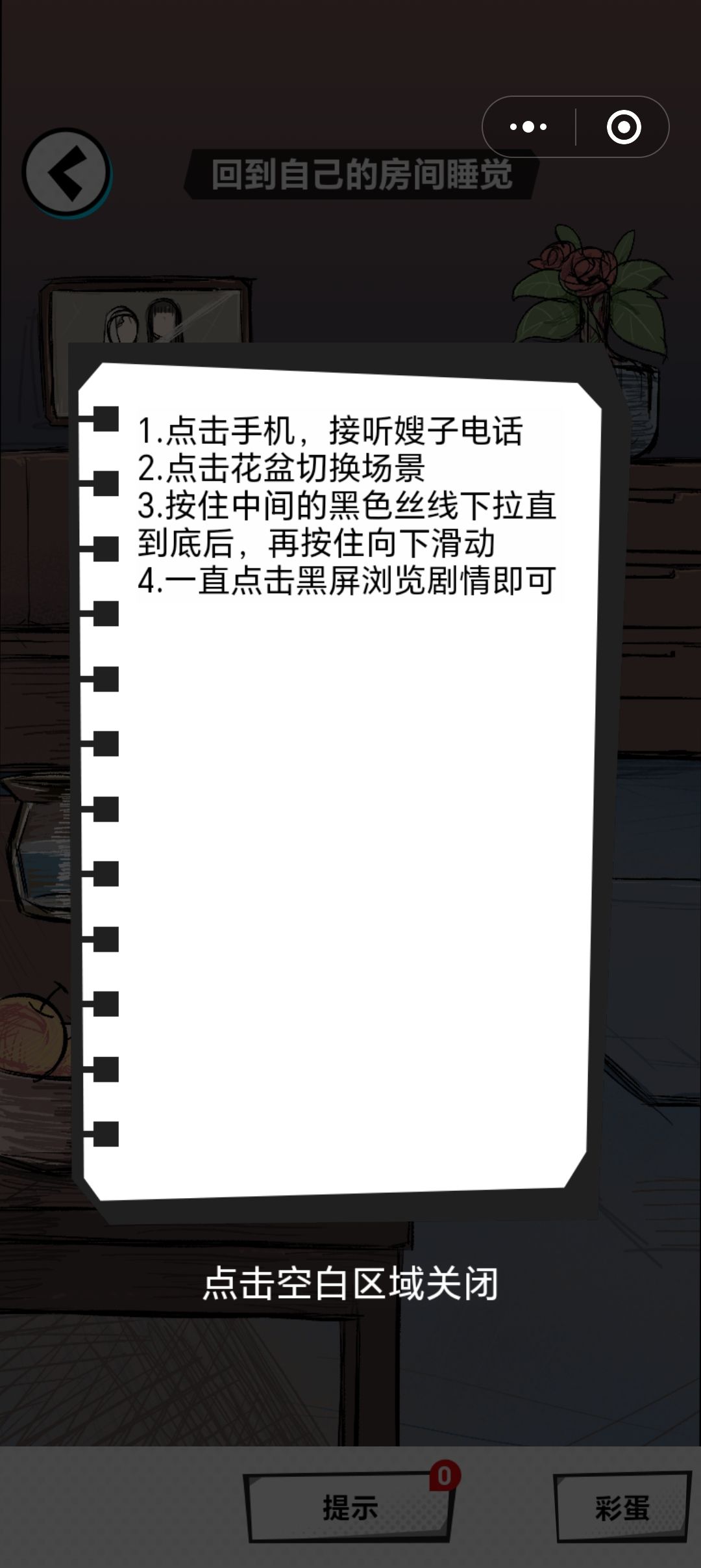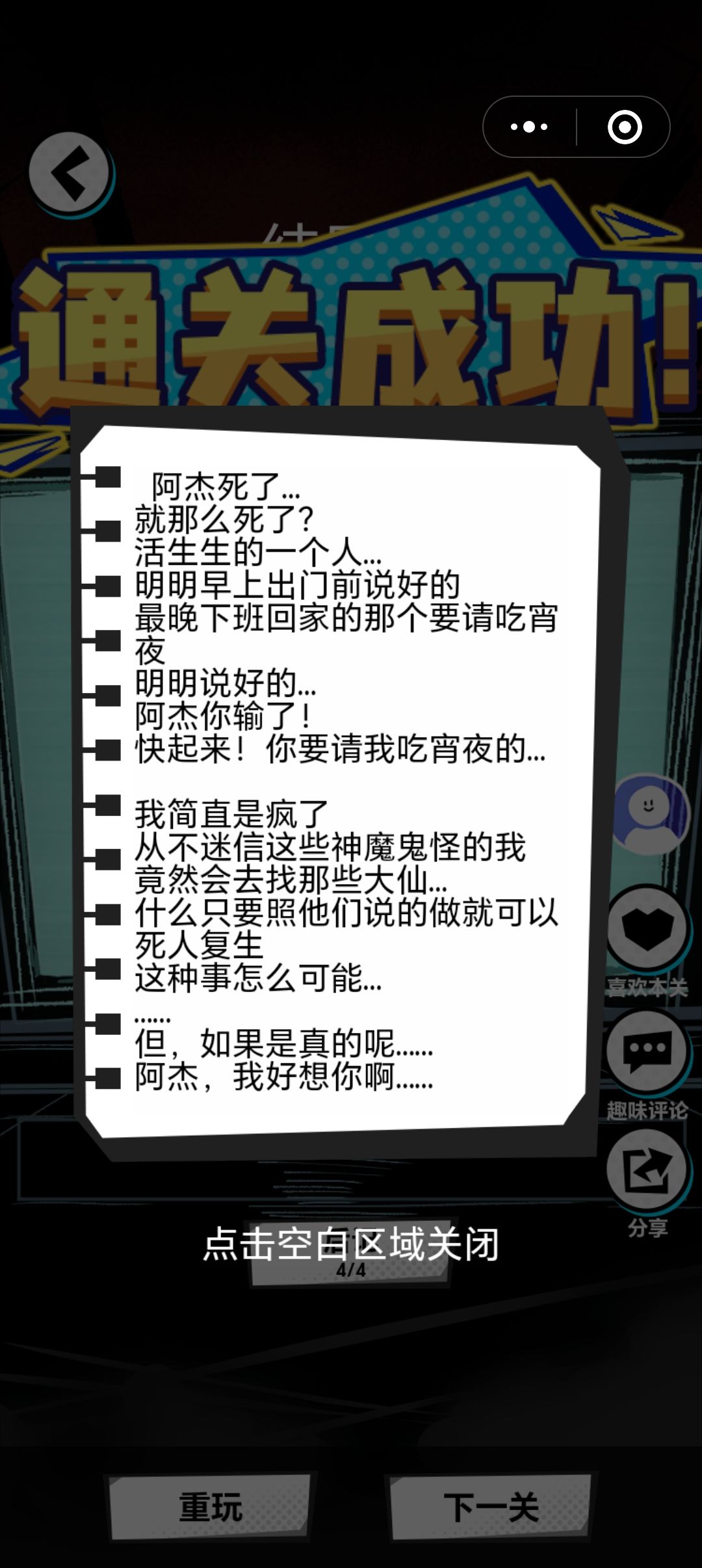 小程序里面还是有类似人间诡视类型的关卡,我体验了一部分,感觉几个比较高质量的关卡(盘丝洞怪谈,午夜之旅,菊花姐姐,盗亦有盗……)