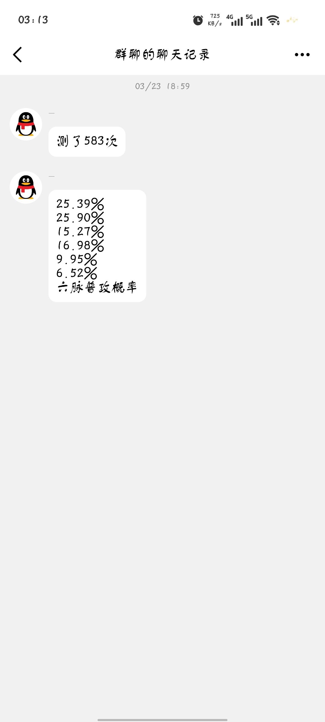 附带一下群里大佬测试的六脉招式概率