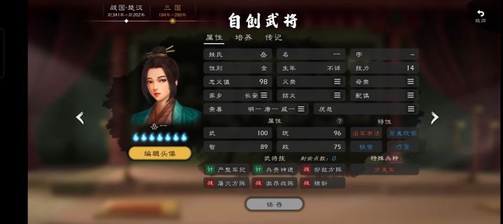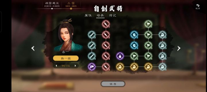 说一下为啥带治军不带文武的问题,一个是自建的时候是打算作为主力兵种使用的,本来就奔着一万以上去的,另一个是因为治军自带的点数刚好能补一个横斩加巧变,输出是比单纯的文武高的。