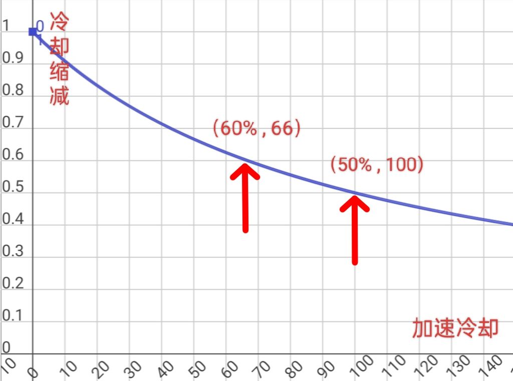 那么,这么调整的依据也很简单,局内能出的装备格数和单件装备加的“加速冷却”都是有限的,而新的冷却算法,越往上叠,冷却缩减的效果越差;这相当于在有限区间内,冷却时间缩减的上限虽然解除了,但是可近似看成有一个更高的虚上限在那。既然是冷却时间缩减的上限提高了,那么装备中“加速冷却”属性的普及度应该跟上。