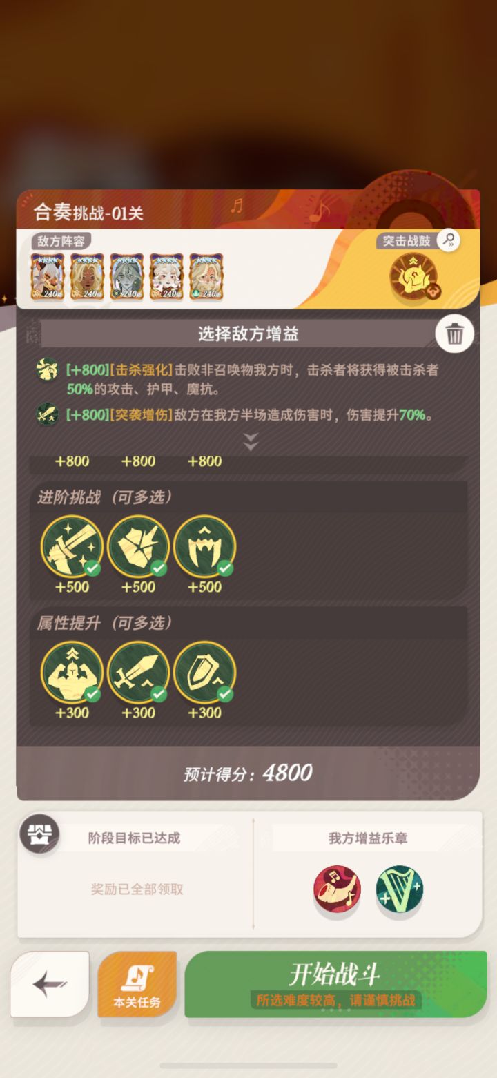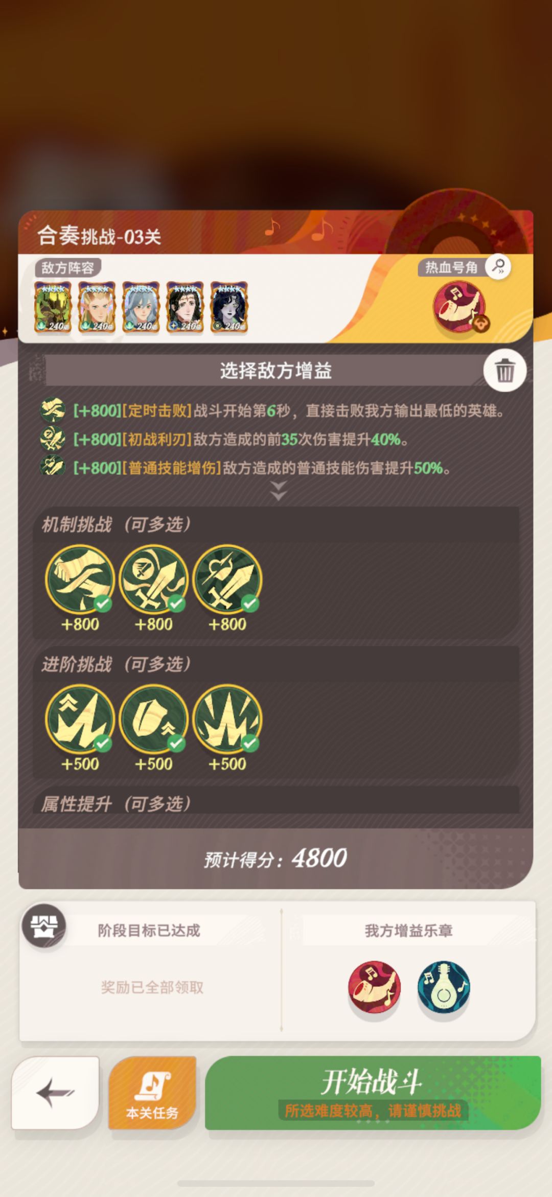 晨辉对决 合奏挑战 4800 满分挑战 01-02-03