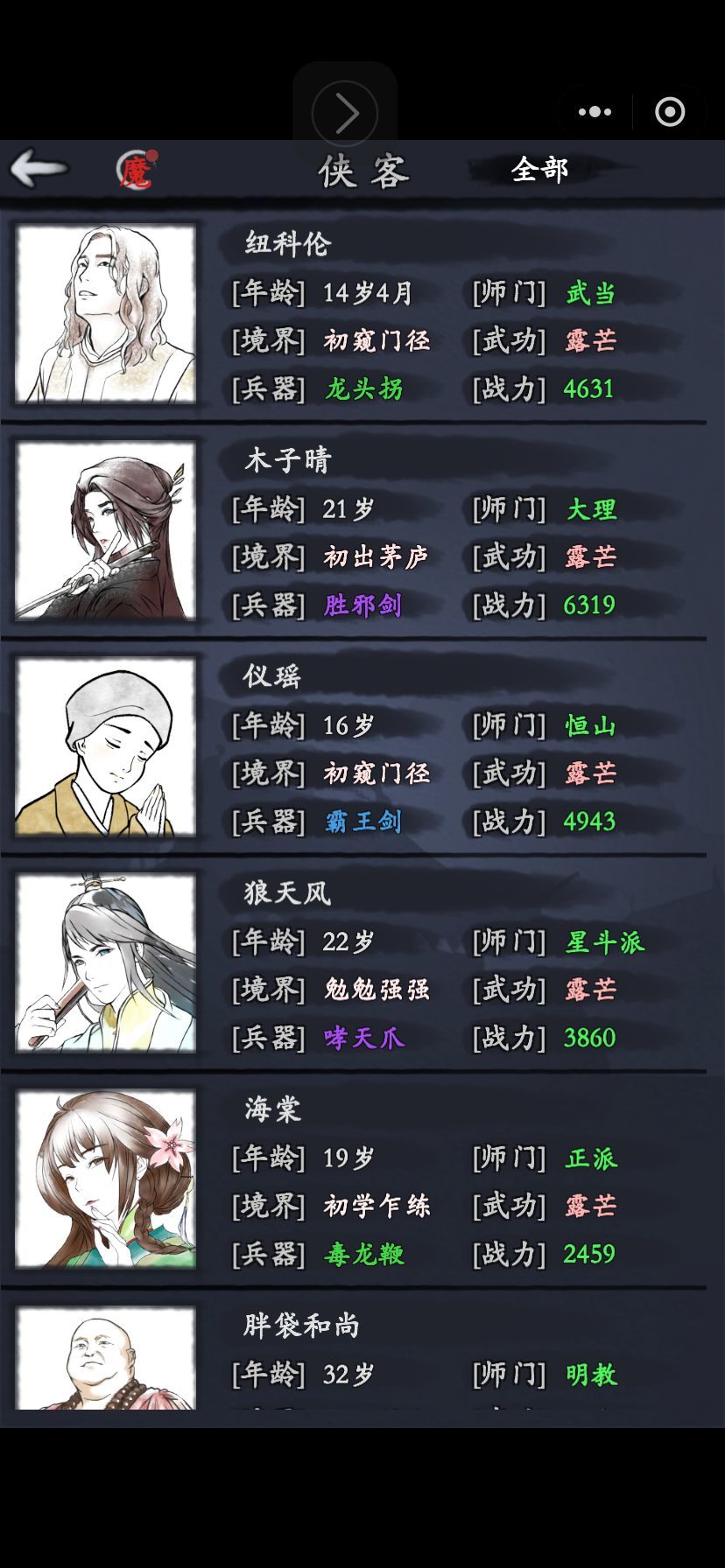 下面是除小林子之外的,其他侠客装备洗
