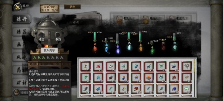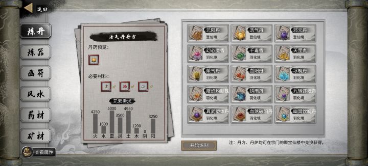 本来已经开始养老 正在研究哪个插件更好用,突然发现新世界 搜罗丹方 炼丹画符 堪舆山水图玩一天,碧绿洞天刷一天药材 炼丹平衡各种元素属性