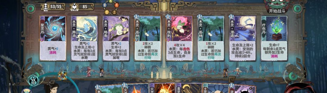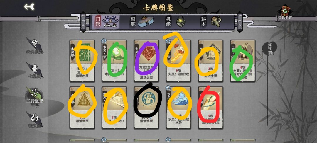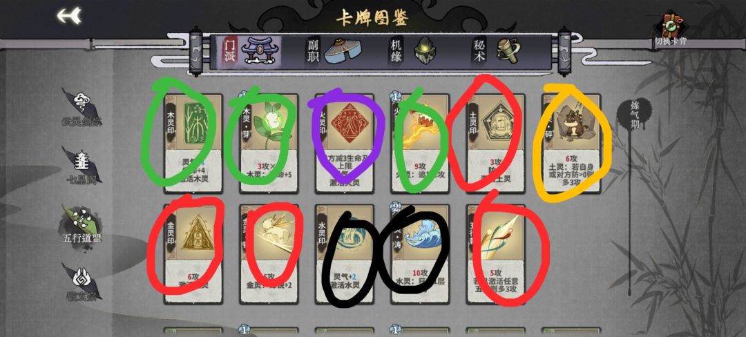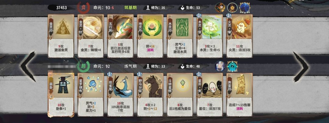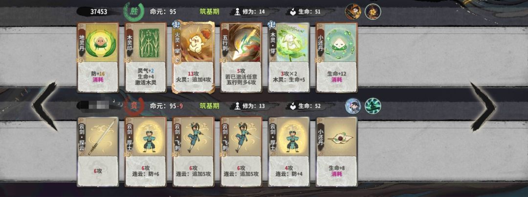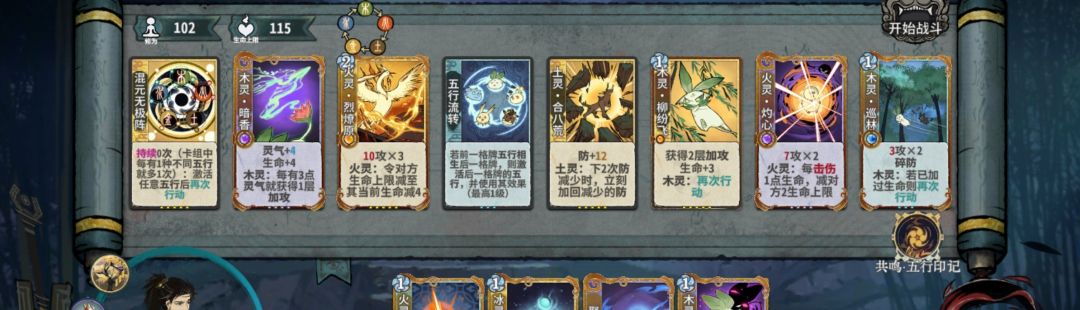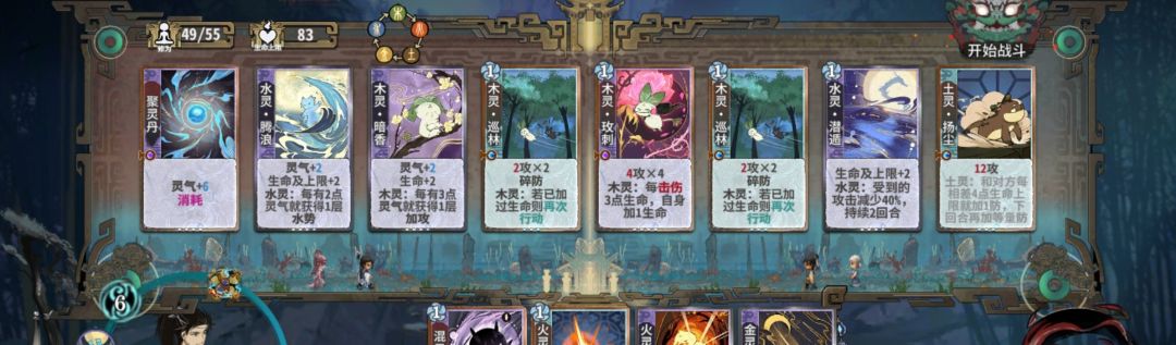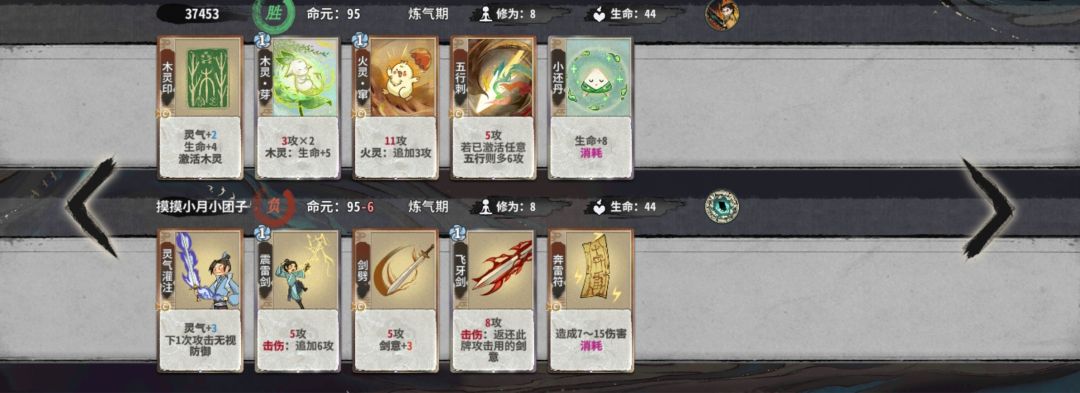 练气期思路与卡练气过渡类似,最好使用混搭法,第三轮不要在练气期交换牌数,升入筑基期后依据手上换牌数进行d牌,保证第8轮有18-25d进入元婴期,第五轮升入金丹后起手葫芦,然后接水 木 火 的顺序,当然,一动木灵疏影也可以