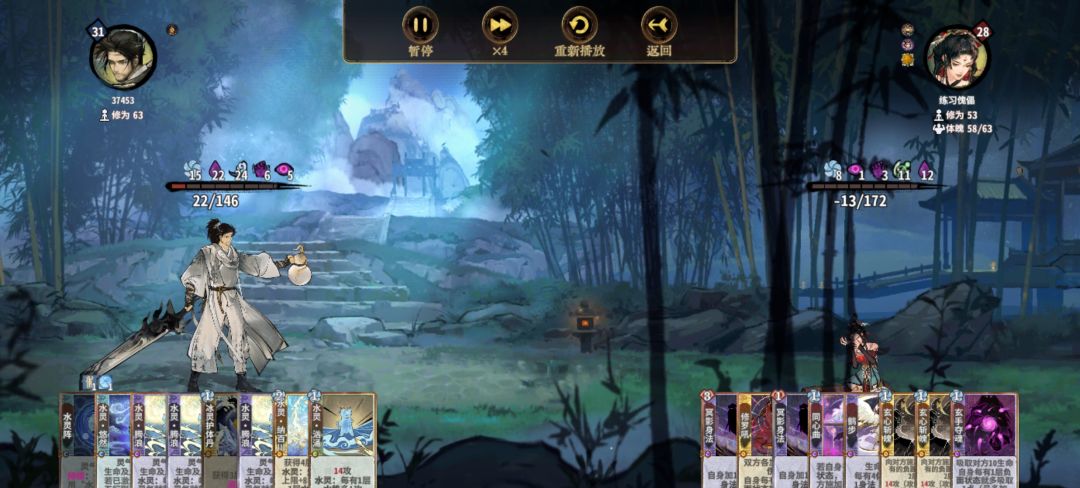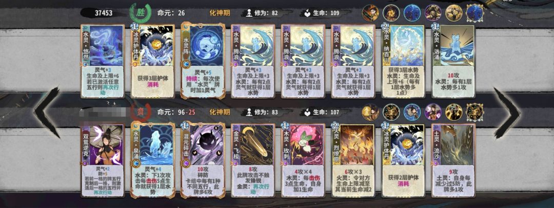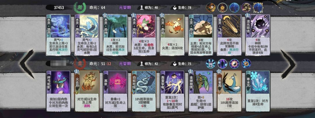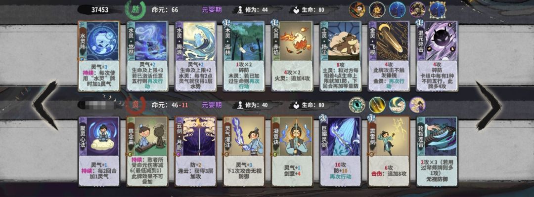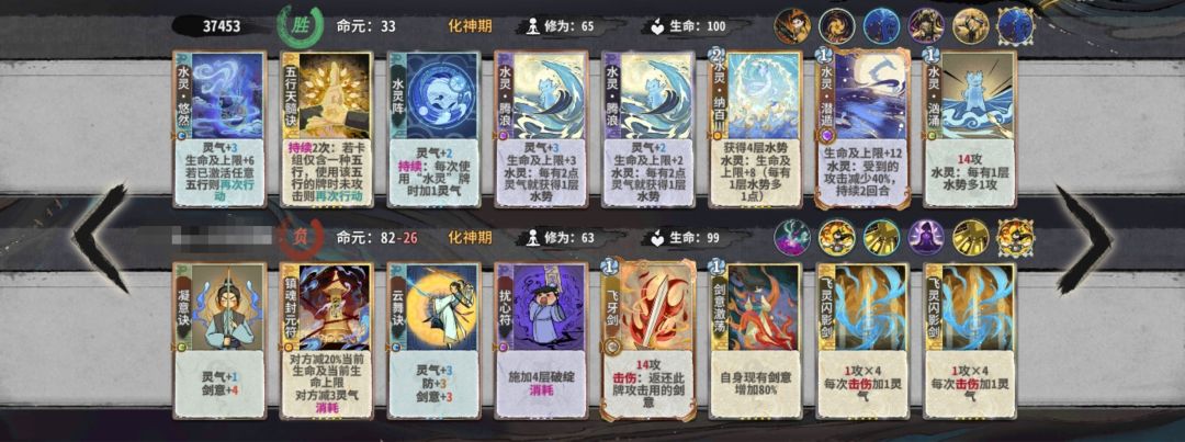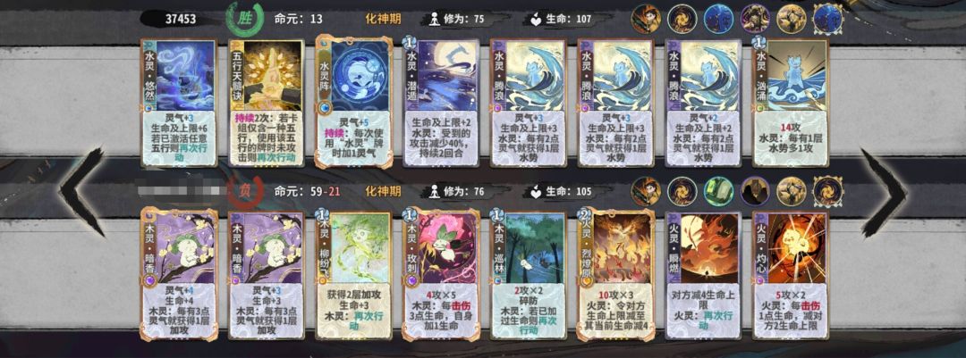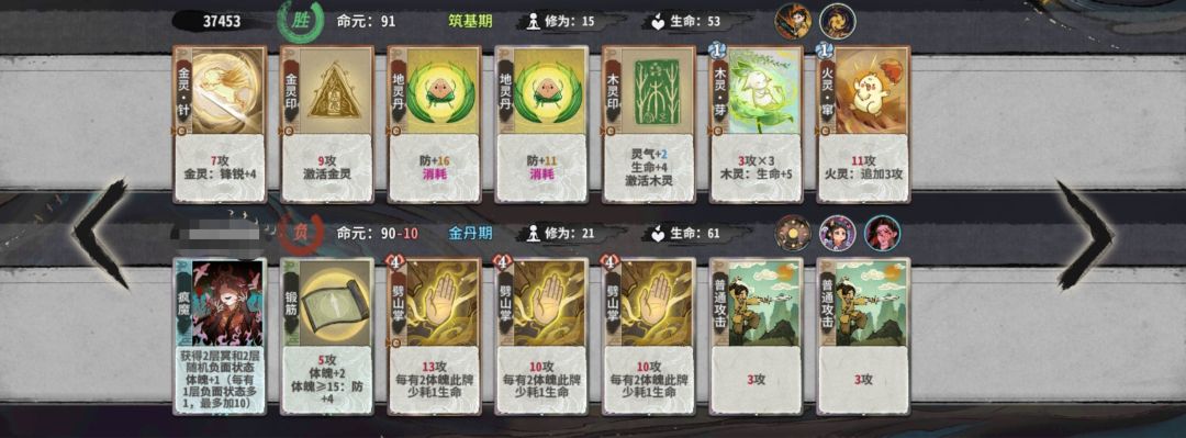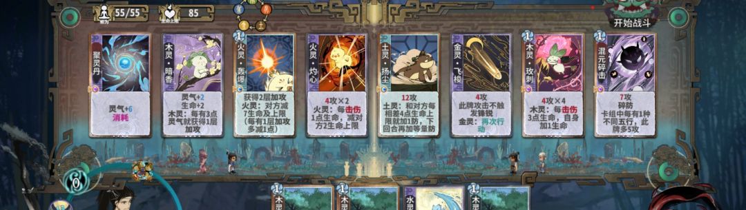 练气期思路与卡练气过渡类似,最好使用混搭法,第三轮不要在练气期交换牌数,升入筑基期后依据手上换牌数进行d牌,保证第8轮有18-25d进入元婴期,第五轮升入金丹后起手葫芦,然后接水 木 火 的顺序,当然,一动木灵疏影也可以