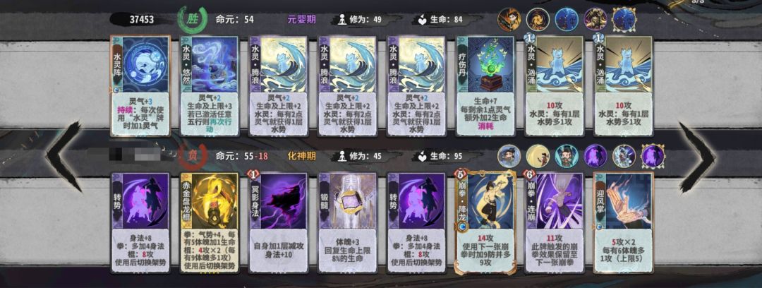 由于有着水灵悠然的加持,吾行之的元婴摆牌相较之前舒服了很多,因此主要采用水木摆法,碎击自然也可以,但是没有之前那么关键,毕竟水灵悠然对碎击套路的成型强度提升最低。