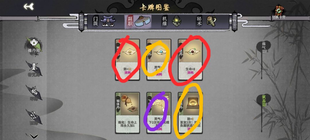 重点提一下,疗伤丹是相当关键的过渡卡,如果金丹摸到不要丢,由于水灵悠然和水木都会提供大量灵气,疗伤丹对于循环的提升相当之大。