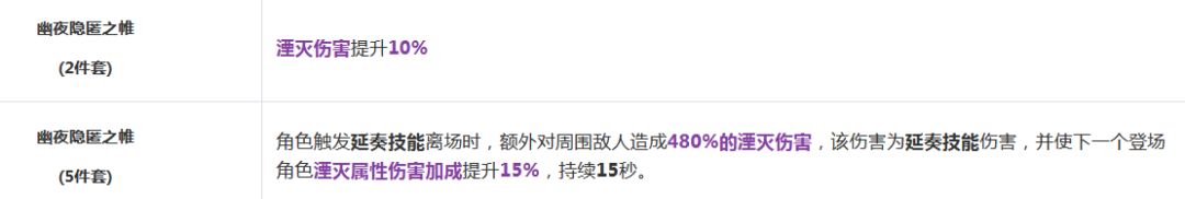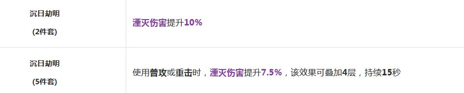 新暗套主要是湮灭辅助用,在椿配合洛可可,坎主要进今汐队的情况下很难吃到五件套加成,所以这套主要是为了以后的新湮灭C做打算,你说这延奏的共鸣技能伤害提升和湮灭伤害提升,再加上声骸计数效果是给谁配合的呢,库洛心思太重了~这一套充能需求130%以上,声骸选择罗蕾莱。