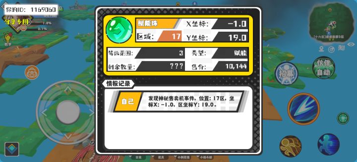 幸运时刻分享! 【神秘售卖机】3月30日下午8点 - 赋能珠【3级 】【稀有度:精良】 【17区】 【X:-1.0, Y:19.0】