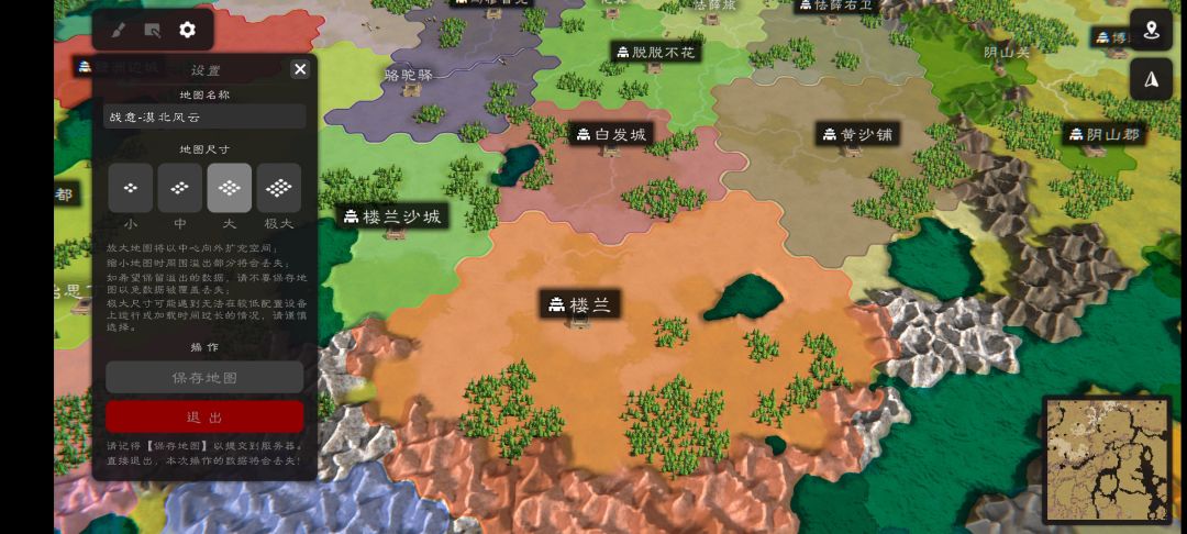 目前地图已经完成百分之七十,😓主要是铺格子改名字太慢,周一发放粗制版试玩,老帝,自建城池一多改府名关口就会卡死,能优化一下吗