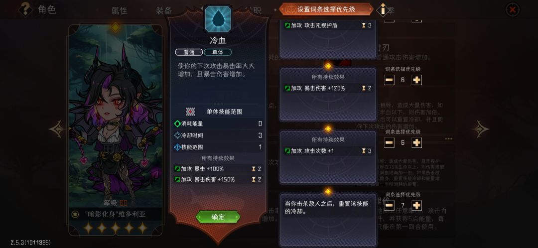 对局的主要思路是优先寻找到飞刀的各个词条,其中飞刀的隐身伤害和落单伤害还有单体转群体词条这三个就是必拿,然后依靠冷血技能的隐身词条以及击杀刷新机制给飞刀刺叠好状态,一个冷血一发飞刀下去基本上就是一个范围性的核弹炸下来了,爬图的时候新人可以手操一下埋伏选择一个合理的位置差不多半分钟就是一关,至于在打到boss的时候,主要思路就是帝弓破盾叠buff,帝刺带闷棍硬控boss三四个回合,帝牧给飞刀刺刷鼓舞和黑手,最后飞刀刺刷完能量一个冷血一发飞刀就能秒120的boss(重甲除外),感觉这一套阵容虽然在挂机上面可能比不上剑圣主c稳,但是入门程度还是比较适合手操的新玩家的。#冒险寻宝然后打败魔王