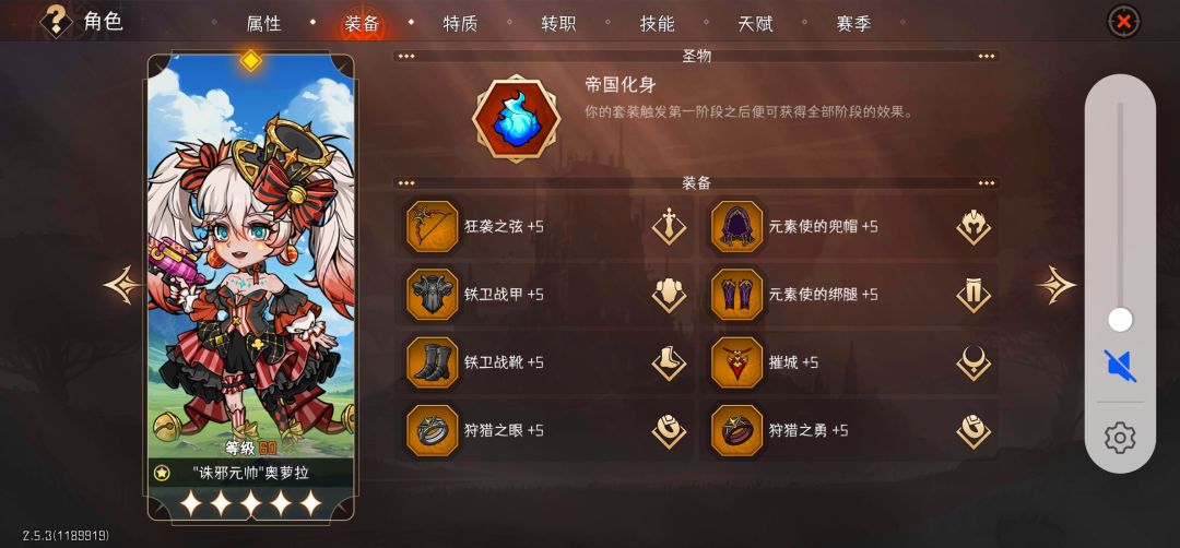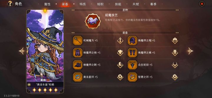装备:见图片(本人杜鹃机械魔方词条随到了守卫攻击次数加1)(有条件的杜鹃装备选用黑金套+回能项链+减cd戒,单体及群体输出均更高)