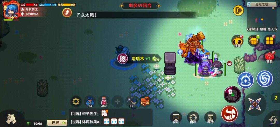 第四日打法(着重讲一下第四天,第四天boss开局会召唤两只黑猫“67w血”,宠物练度不够容易暴死(我把流血装都给了希尔非,我自己近战,所以要保一下它)如果挂上朦胧回合结束没打死,需要沉淀一下了(也可以邪教流,宠物全给生命流失,保宠物不死死了重开,应该也能刮死)