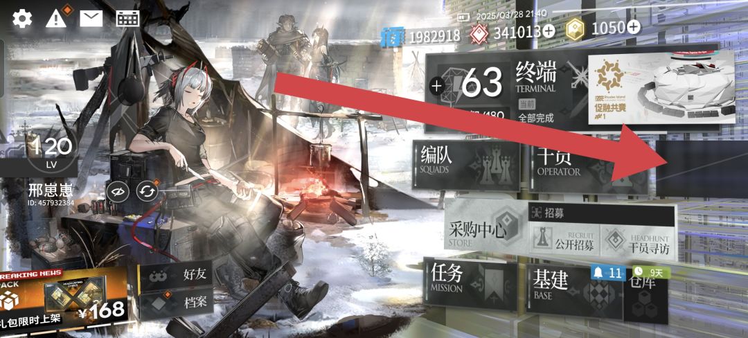 ④在明日方舟游戏主界面的UI中有一个从未使用过的模块,你只需要摇晃你的手机屏幕就可以看到,估计以后也不打算启用了。