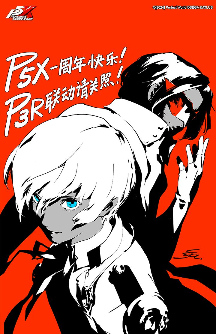 为了庆贺《女神异闻录:夜幕魅影》上线一周年,与P3R联动开启在即,由副岛成记先生(ATLUS)绘制的特别插画,正式公开!