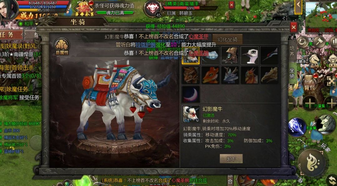 防具:包括头盔、衣服、鞋子等,提升角色的防御力。
