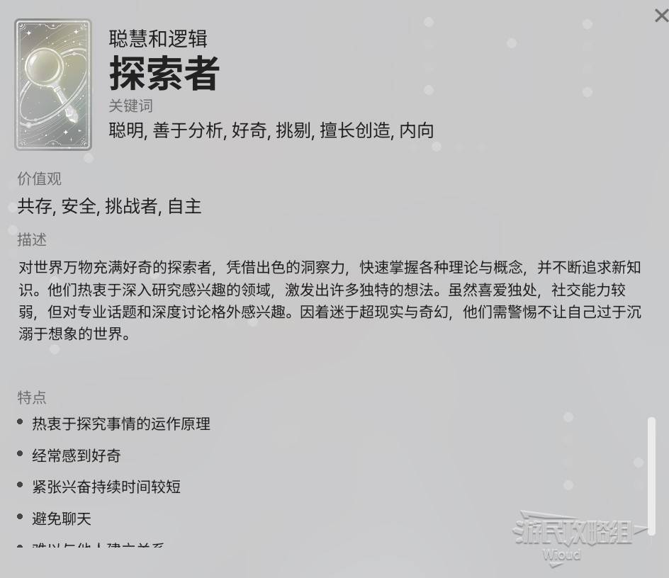 价值观:价值观在小人的青春期逐渐形成,主要受到特质影响,而后期的各种选择与经历也会导致价值观发生改变,不同价值观的小人会有不同的互动选项。