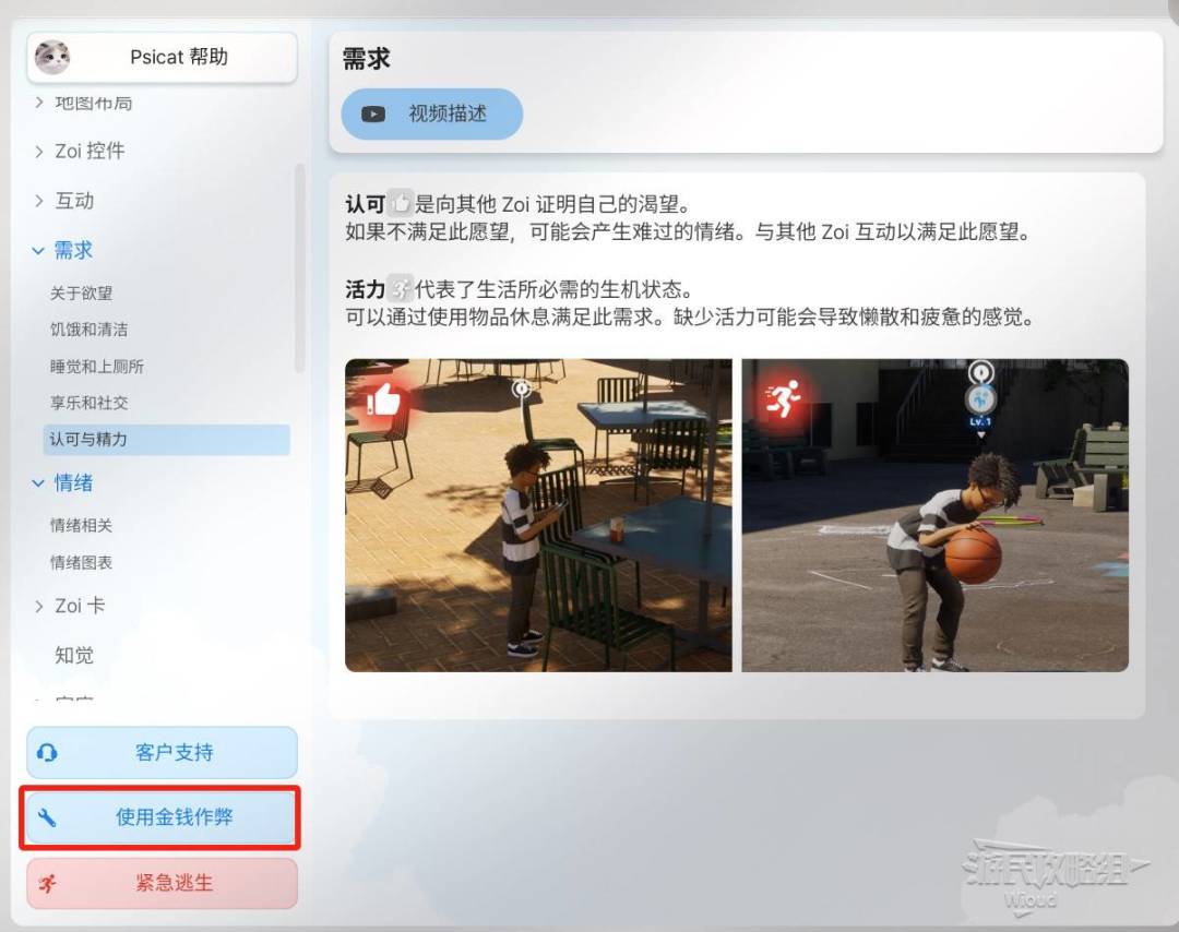 弹出的帮助弹窗左下角点击【使用金钱作弊】即可直接获得大量金钱。