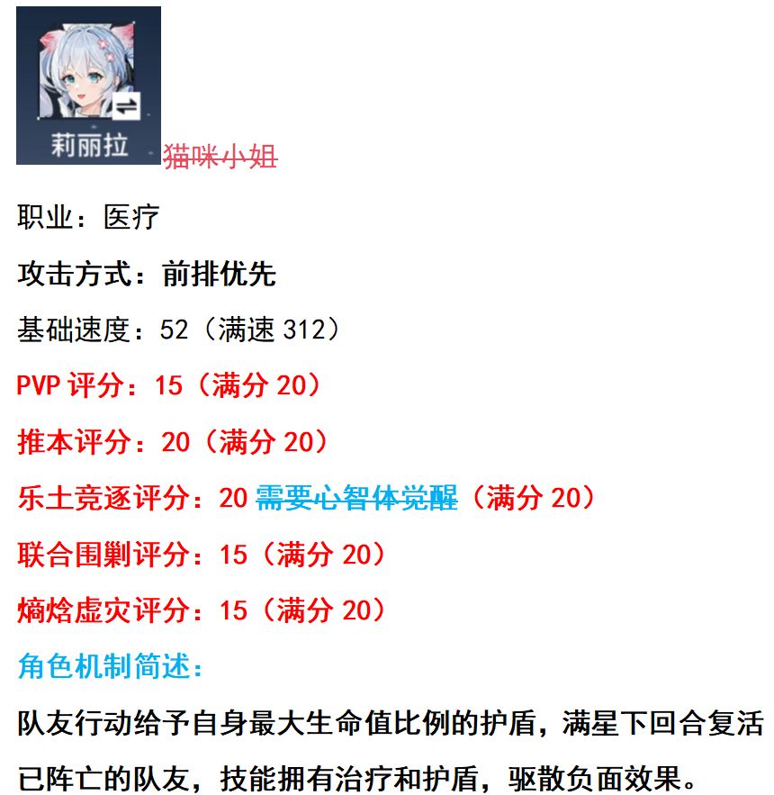 大家好啊,这里是雨宫,本期攻略给大家带来更新版的莉丽拉培养方案,话不多说看下文。